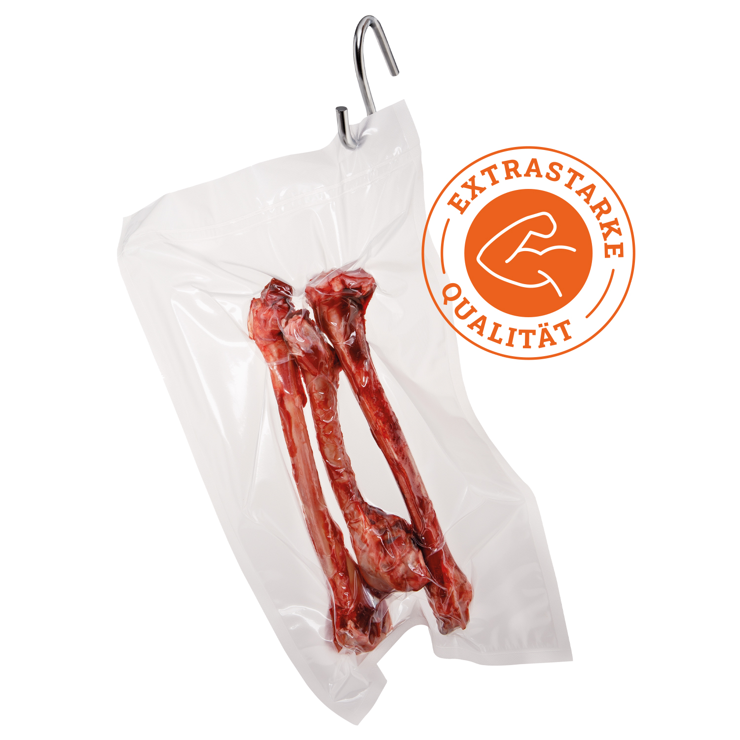 Extrastarke Vakuumbeutel in 160 µ Folienqualität für scharfkantige Produkte in einer ca. 70 % stärkeren Folienqualität. Erhältlich in 4 versch. Größen
