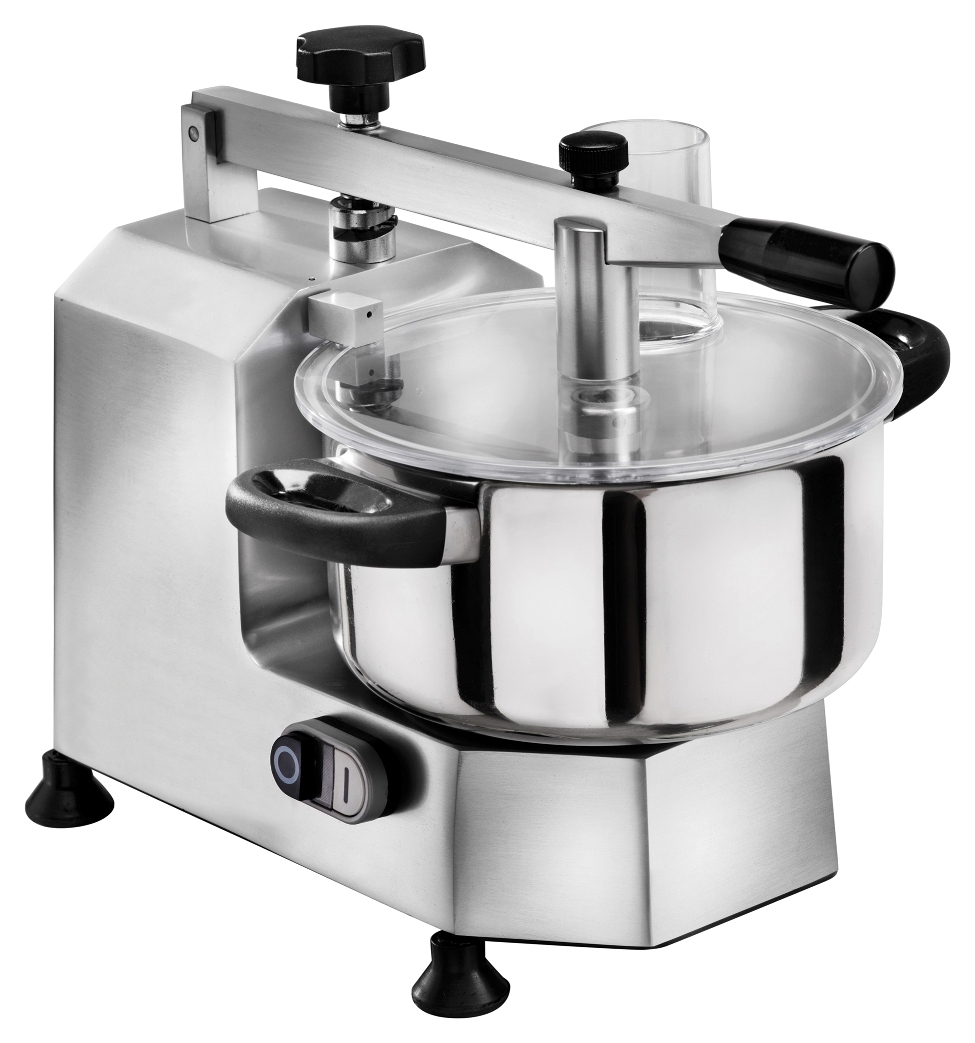 Dieser 3 Liter Kutter hat eine maximal nutzbare Füllmenge von 1,7 Liter. Während der Verarbeitung des Produktes vergrößert sich das Volumen, deshalb ist bei dieser Bauart ein Rührtopf mit 3 Liter Volumen erforderlich.